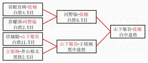 3.下半区半决赛山下敬吾获胜,比分:山下敬吾1:0王铭琬。棋局: