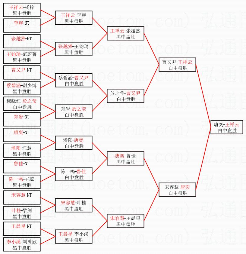 1.王祥云获得冠军,唐奕获得亚军。决赛比分:王祥云2:1唐奕。棋局: