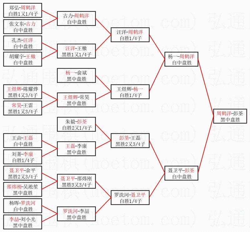 1.周鹤洋获得冠军,彭荃获得亚军。决赛比分:周鹤洋1:0彭荃。棋局:
