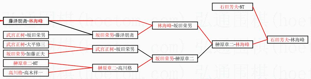| 1.石田芳夫获得冠军,林海峰获得亚军。决赛比分:石田芳夫4:0林海峰。棋局: | ||
