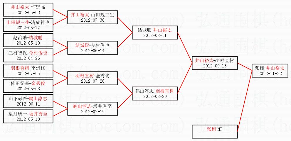 1.井山裕太获得冠军,张栩获得亚军。决赛比分:井山裕太3:0张栩。棋局: