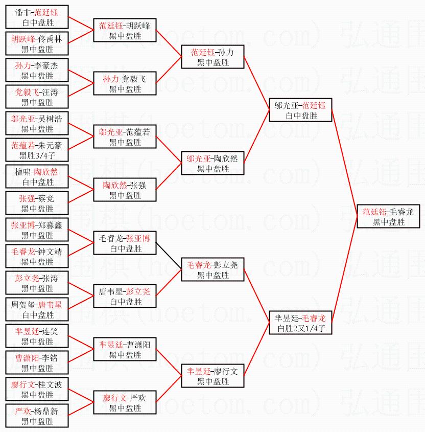 | 1.范廷钰获得冠军,毛睿龙获得亚军。决赛比分:范廷钰2:0毛睿龙。棋局: | ||