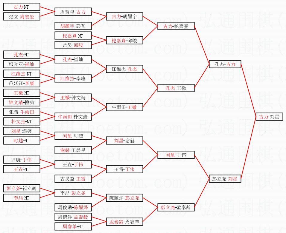 | 1.古力获得冠军,刘星获得亚军。决赛比分:古力2:0刘星。棋局: | ||