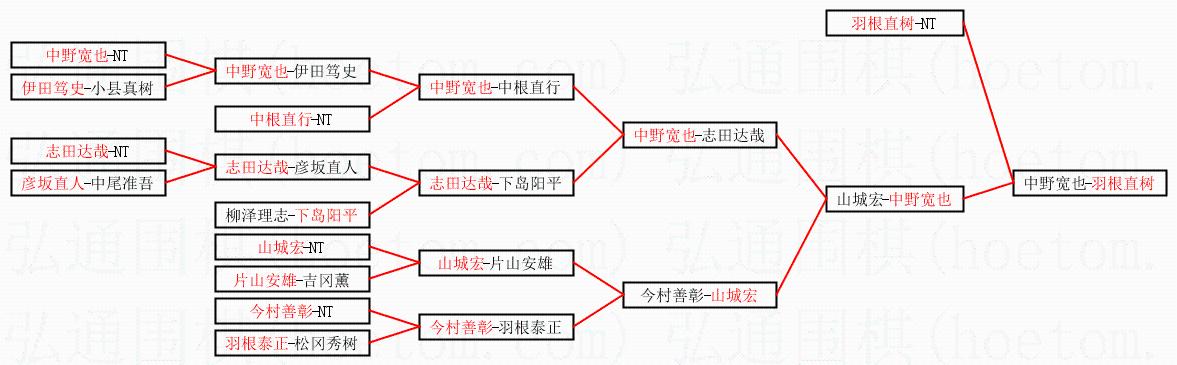 1.羽根直树获得冠军,中野宽也获得亚军。决赛比分:羽根直树1:0中野宽也。棋局: