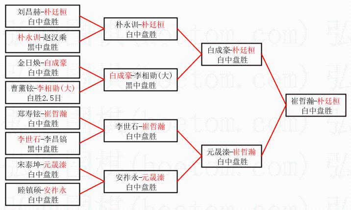 | 1.朴廷桓获得冠军,崔哲瀚获得亚军。决赛比分:朴廷桓2:0崔哲瀚。棋局: | ||