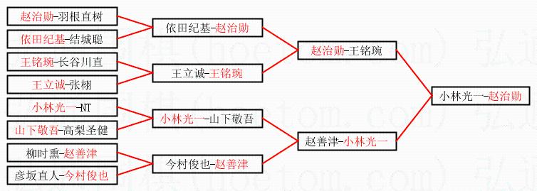 3.下半区半决赛小林光一获胜,比分:小林光一1:0赵善津。棋局: