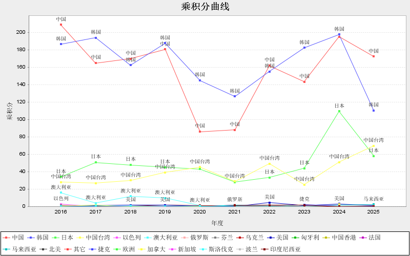 TOP国家/地区乘积分变化曲线