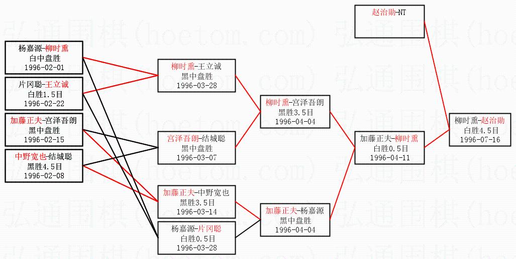1.赵治勋获得冠军,柳时熏获得亚军。决赛比分:赵治勋4:2柳时熏。棋局: