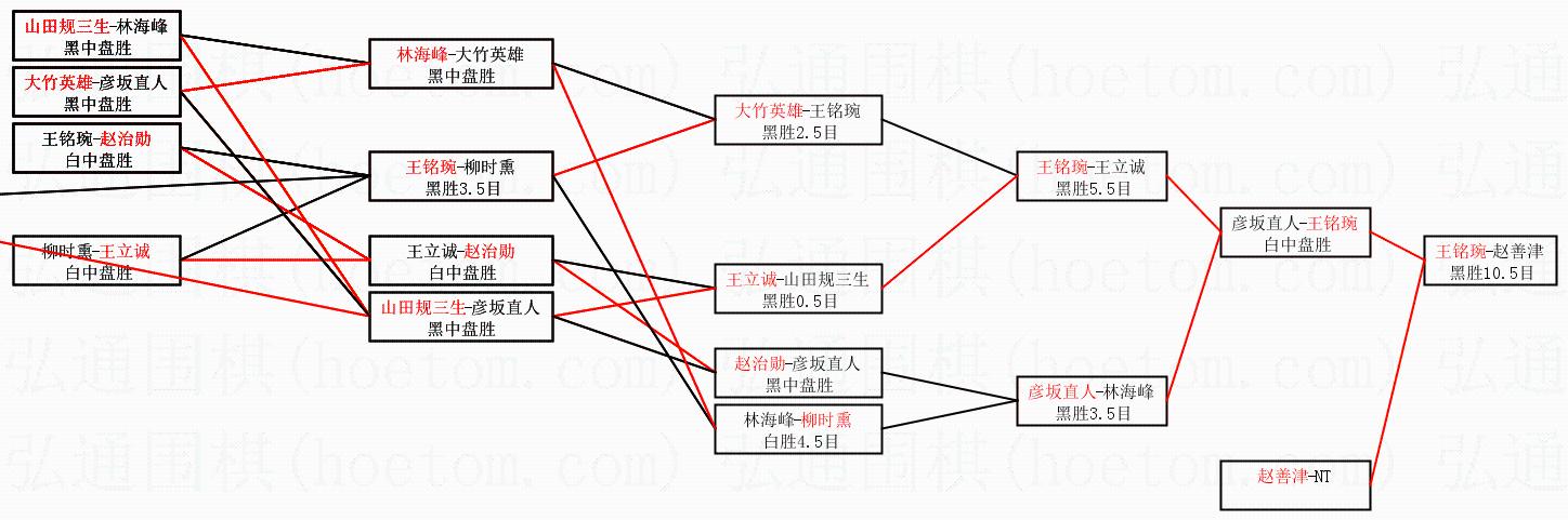 2.上半区半决赛王铭琬获胜, 比分:王铭琬 1:0 彦坂直人。棋局: