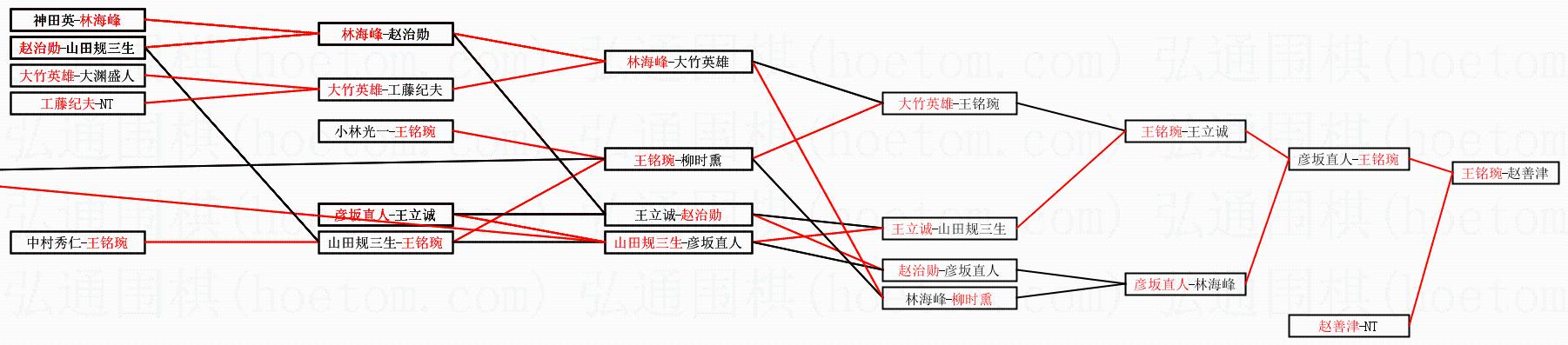 2.上半区半决赛王铭琬获胜, 比分:王铭琬 1:0 彦坂直人。棋局: