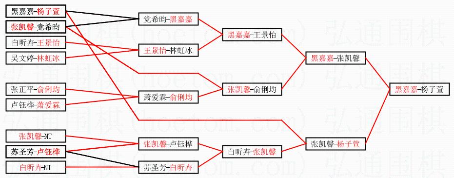 1.黑嘉嘉获得冠军,杨子萱获得亚军。决赛比分:黑嘉嘉1:0杨子萱。棋局: