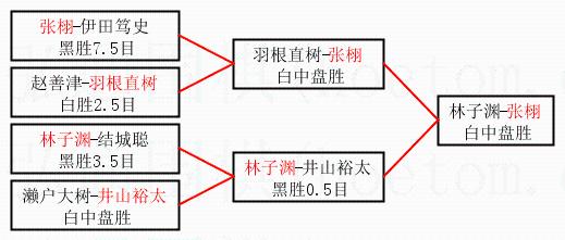 3.下半区半决赛林子渊获胜,比分:林子渊1:0井山裕太。棋局: