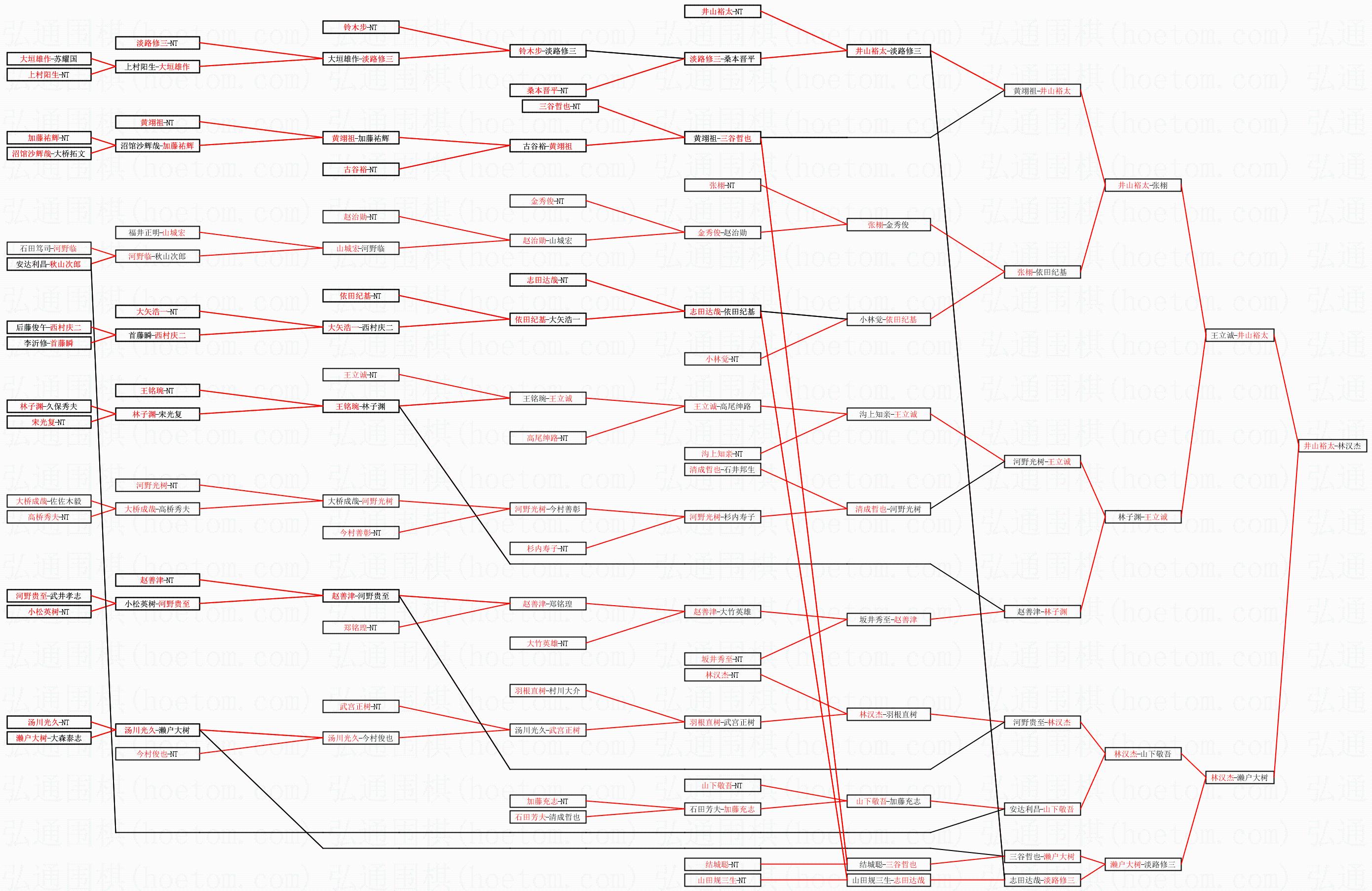 1.井山裕太获得冠军,林汉杰获得亚军。决赛比分:井山裕太1:0林汉杰。棋局: