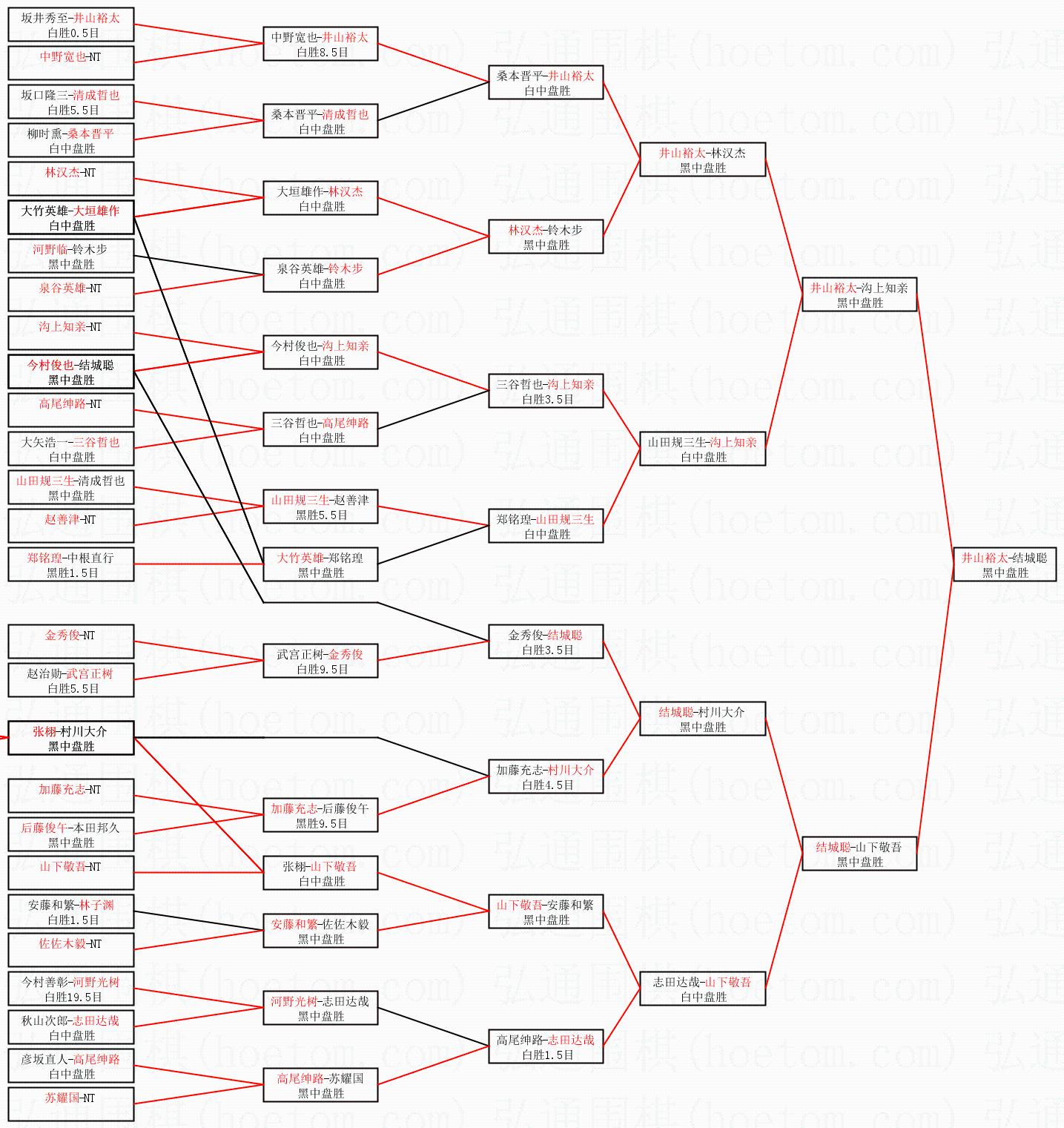 2.上半区半决赛井山裕太获胜, 比分:井山裕太 1:0 沟上知亲。棋局: