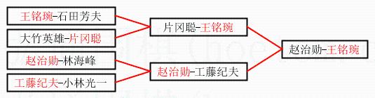 2.上半区半决赛王铭琬获胜, 比分:王铭琬 1:0 片冈聪。棋局: