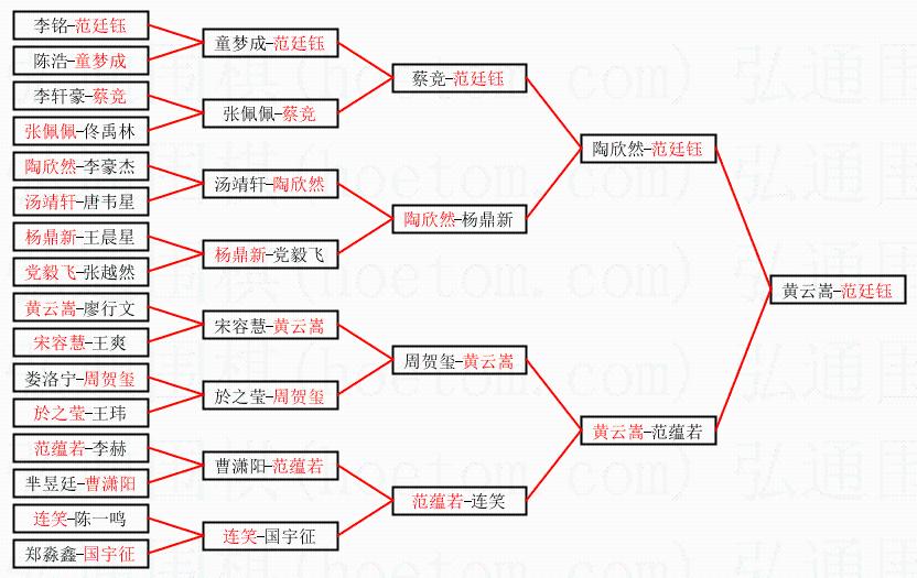 1.范廷钰获得冠军,黄云嵩获得亚军。决赛比分:范廷钰2:0黄云嵩。棋局:
