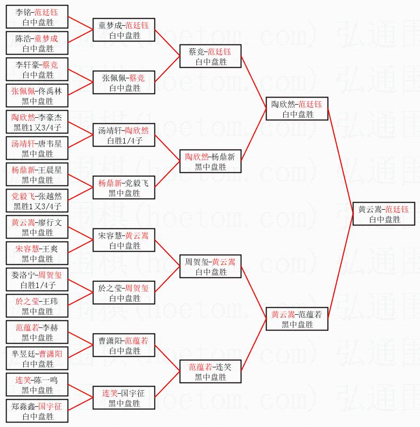 | 1.范廷钰获得冠军,黄云嵩获得亚军。决赛比分:范廷钰2:0黄云嵩。棋局: | ||