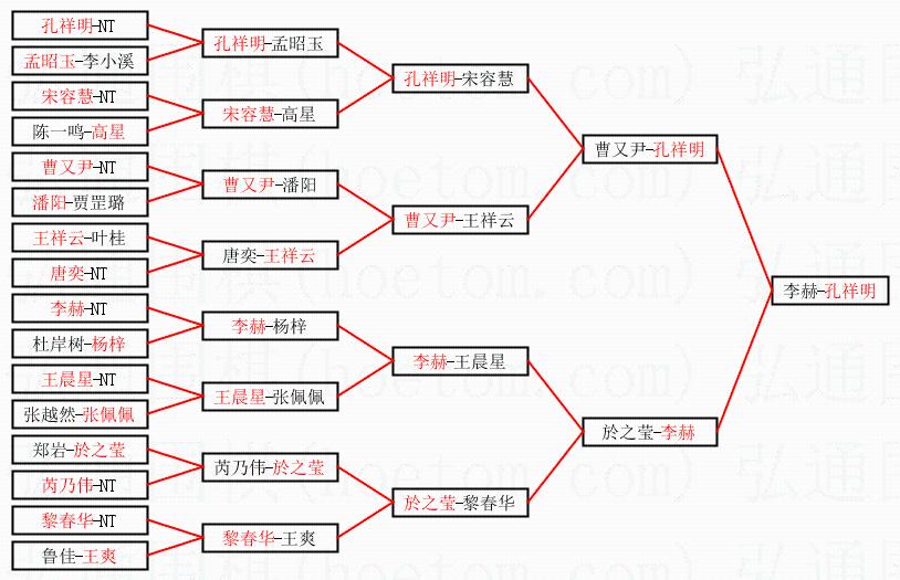 | 1.孔祥明获得冠军,李赫获得亚军。决赛比分:孔祥明1:0李赫。棋局: | ||