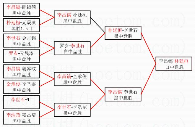 | 1.朴廷桓获得冠军,李昌镐获得亚军。决赛比分:朴廷桓2:1李昌镐。棋局: | ||