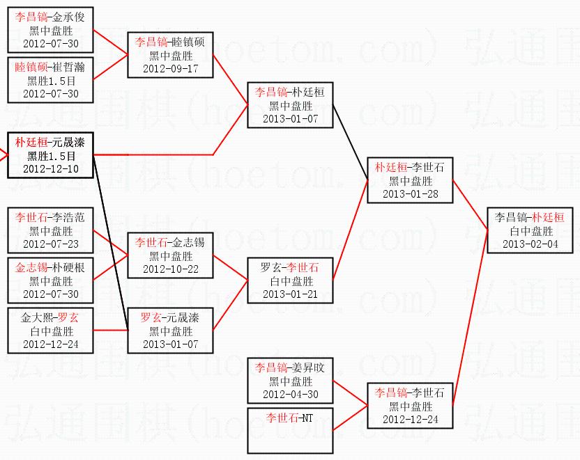 2.上半区半决赛朴廷桓获胜, 比分:朴廷桓 1:0 李世石。棋局: