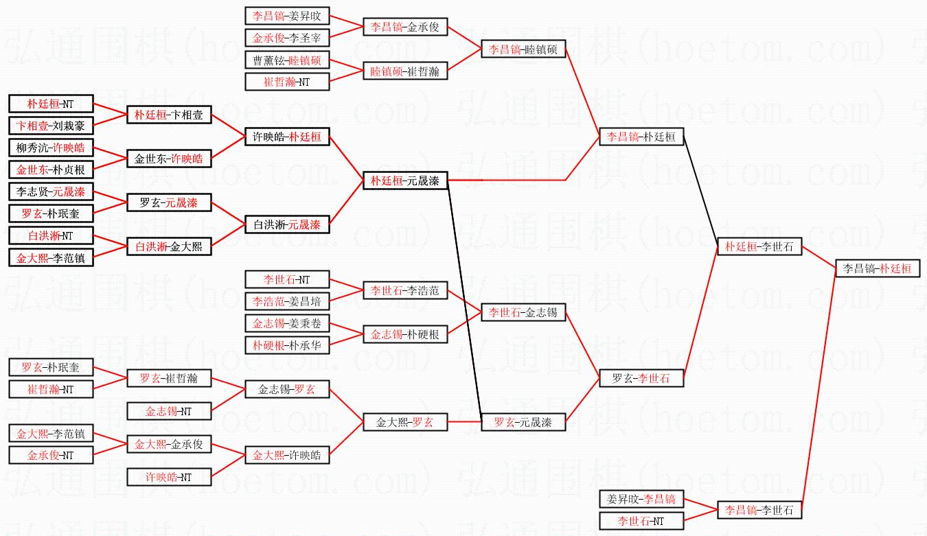 | 1.朴廷桓获得冠军,李昌镐获得亚军。决赛比分:朴廷桓2:1李昌镐。棋局: | ||