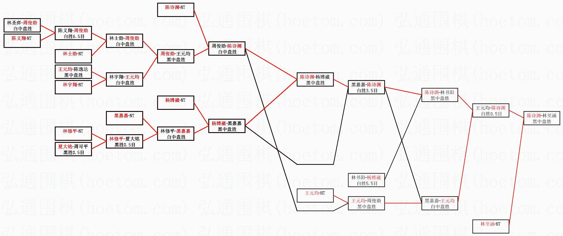 | 2.上半区半决赛陈诗渊获胜, 比分:陈诗渊 1:0 王元均。棋局: | ||