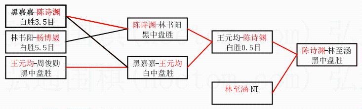 | 2.上半区半决赛陈诗渊获胜, 比分:陈诗渊 1:0 王元均。棋局: | ||