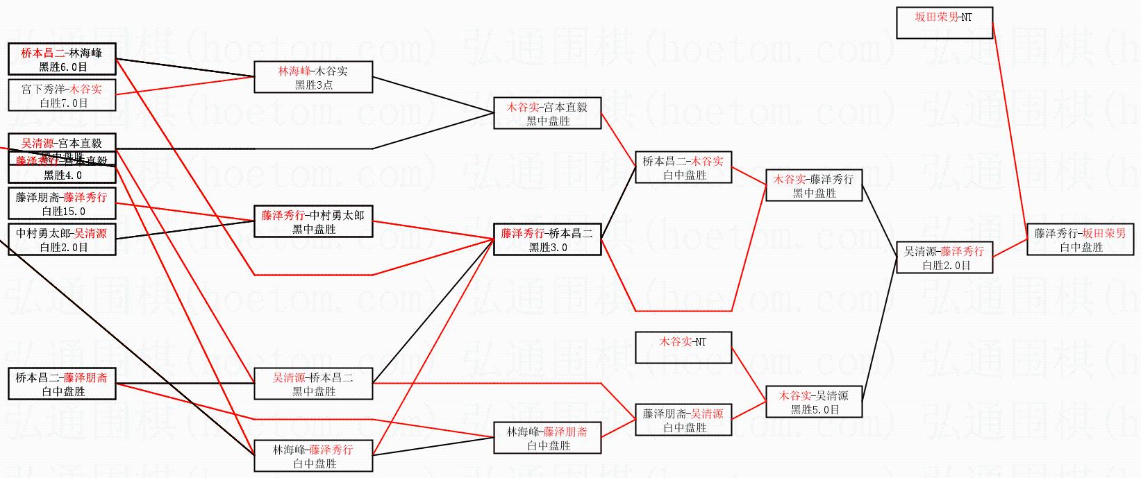 | 1.坂田荣男获得冠军,藤泽秀行获得亚军。决赛比分:坂田荣男4:1藤泽秀行。棋局: | ||