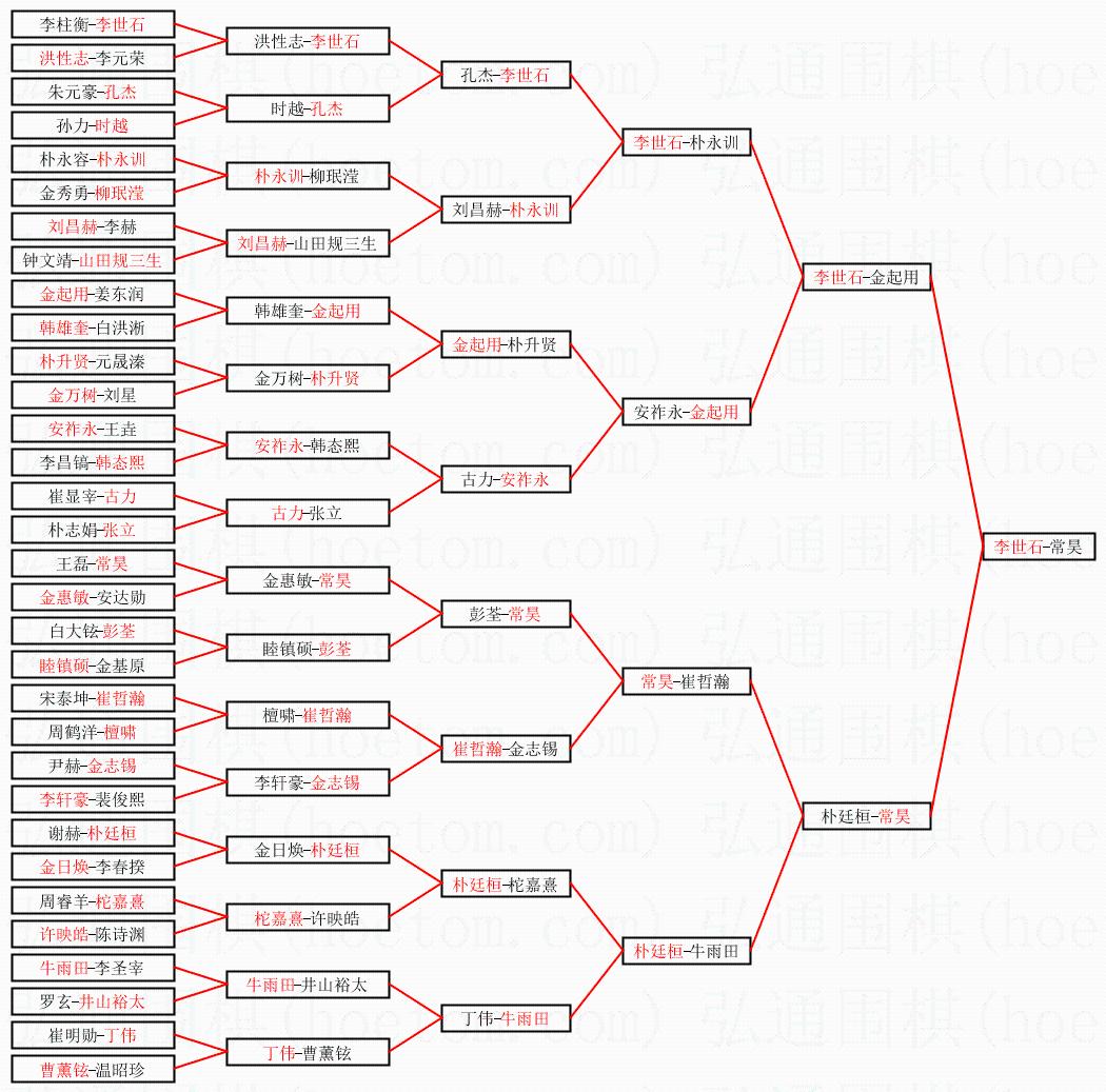 1.李世石获得冠军,常昊获得亚军。决赛比分:李世石3:0常昊。棋局: