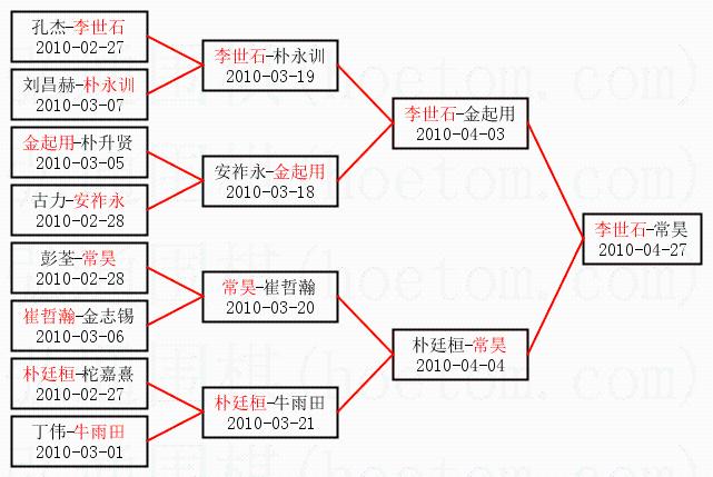 | 1.李世石获得冠军,常昊获得亚军。决赛比分:李世石3:0常昊。棋局: | ||