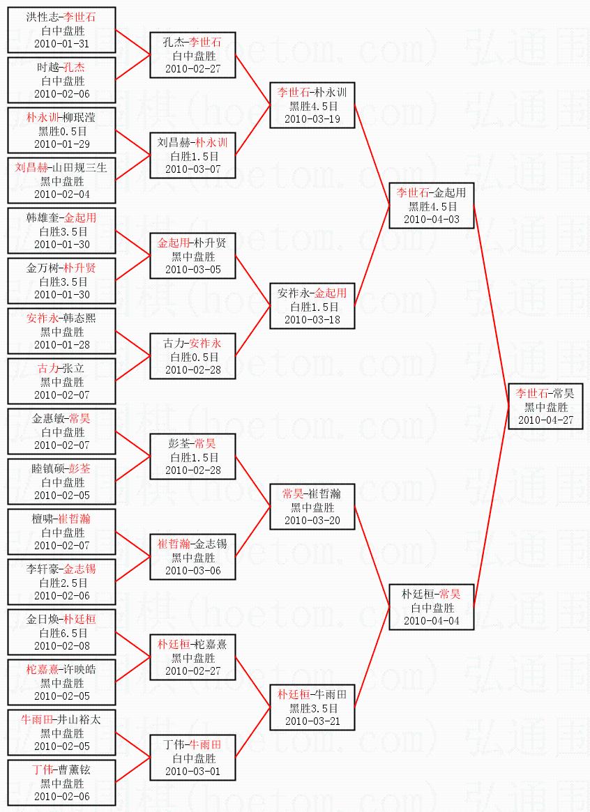 1.李世石获得冠军,常昊获得亚军。决赛比分:李世石3:0常昊。棋局: