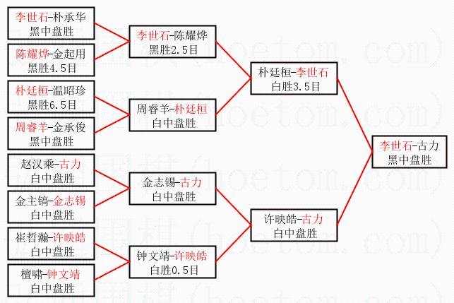 3.下半区半决赛古力获胜,比分:古力1:0许映皓。棋局: