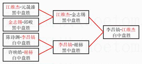 2.上半区半决赛江维杰获胜, 比分:江维杰 1:0 金志锡。棋局: