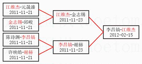 1.江维杰获得冠军,李昌镐获得亚军。决赛比分:江维杰2:0李昌镐。棋局: