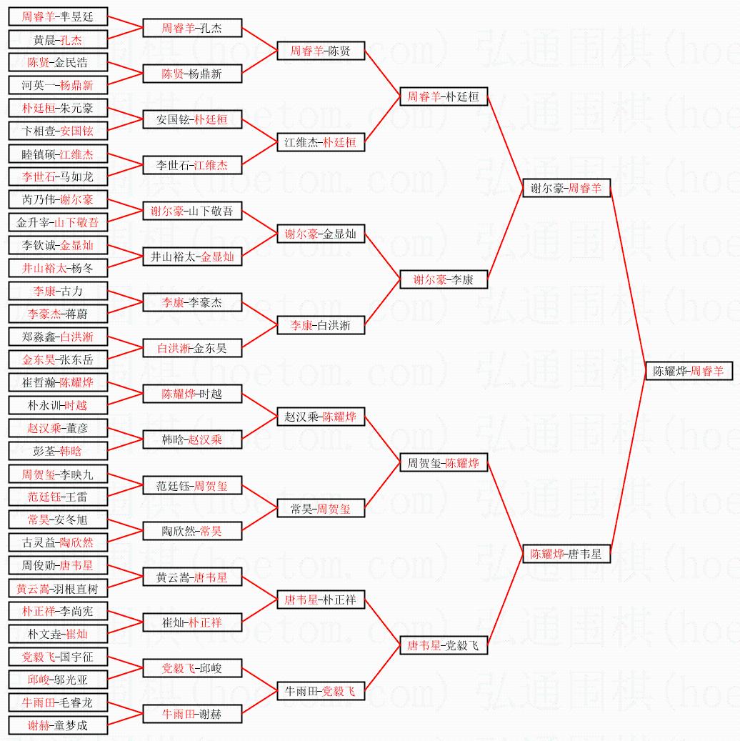 1.周睿羊获得冠军,陈耀烨获得亚军。决赛比分:周睿羊3:0陈耀烨。棋局: