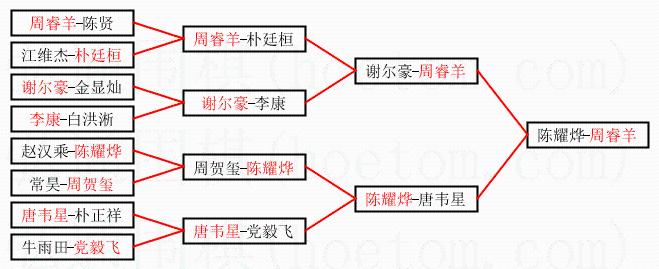 | 1.周睿羊获得冠军,陈耀烨获得亚军。决赛比分:周睿羊3:0陈耀烨。棋局: | ||