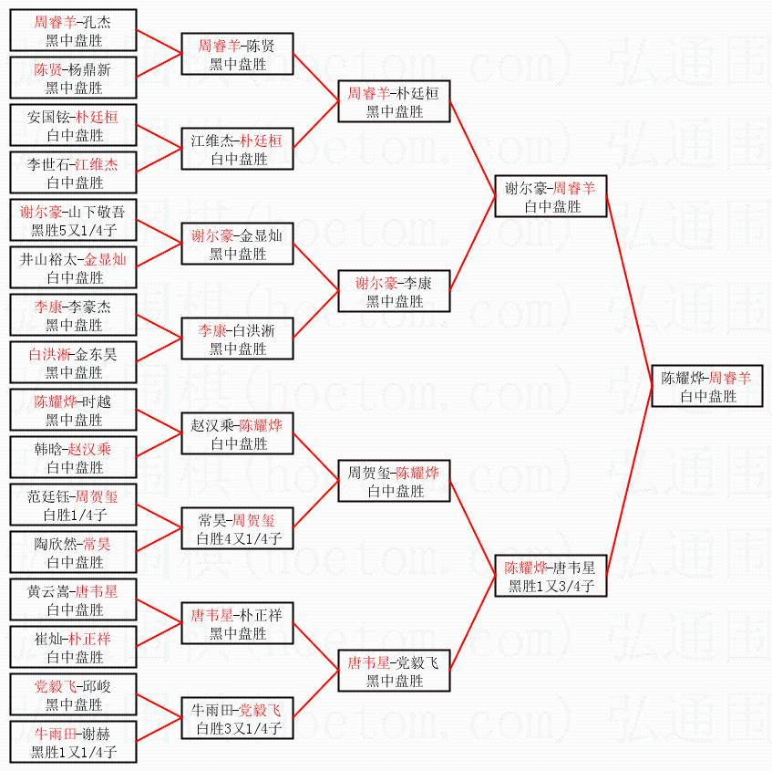2.上半区半决赛周睿羊获胜, 比分:周睿羊 2:1 谢尔豪。棋局: