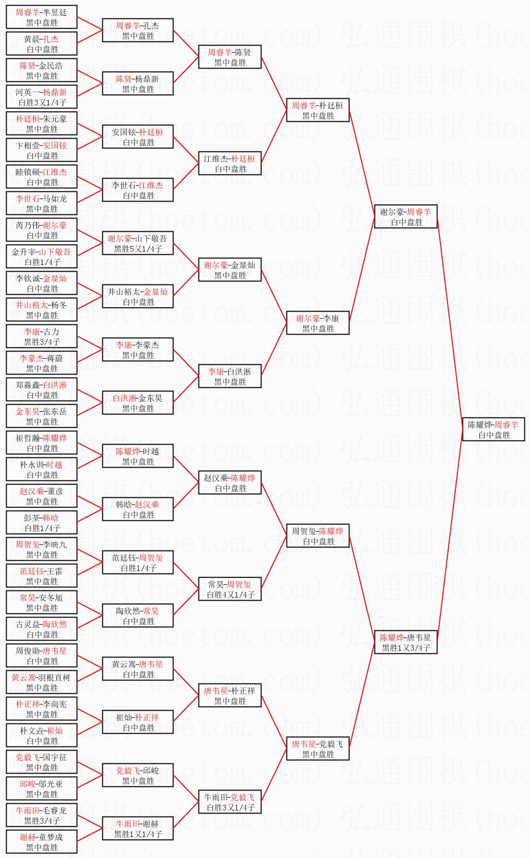 | 1.周睿羊获得冠军,陈耀烨获得亚军。决赛比分:周睿羊3:0陈耀烨。棋局: | ||