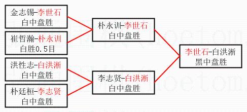 | 1.李世石获得冠军,白洪淅获得亚军。决赛比分:李世石3:2白洪淅。棋局: | ||