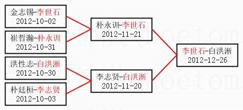 | 1.李世石获得冠军,白洪淅获得亚军。决赛比分:李世石3:2白洪淅。棋局: | ||