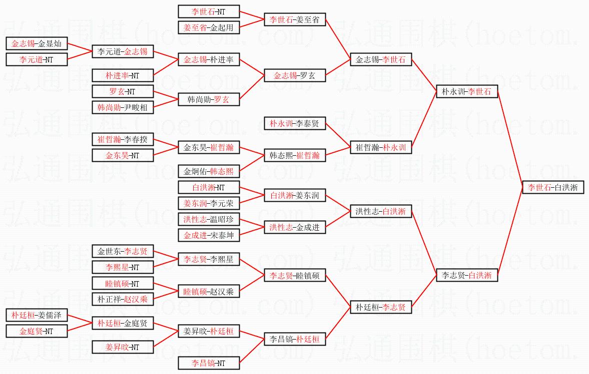 1.李世石获得冠军,白洪淅获得亚军。决赛比分:李世石3:2白洪淅。棋局: