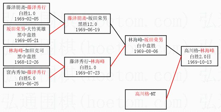2.上半区半决赛坂田荣男获胜, 比分:坂田荣男 1:0 林海峰。棋局: