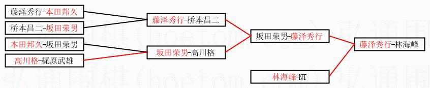 2.上半区半决赛藤泽秀行获胜, 比分:藤泽秀行 1:0 坂田荣男。棋局:
