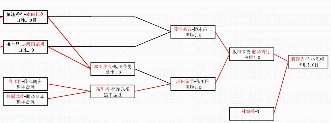 | 2.上半区半决赛藤泽秀行获胜, 比分:藤泽秀行 1:0 坂田荣男。棋局: | ||
