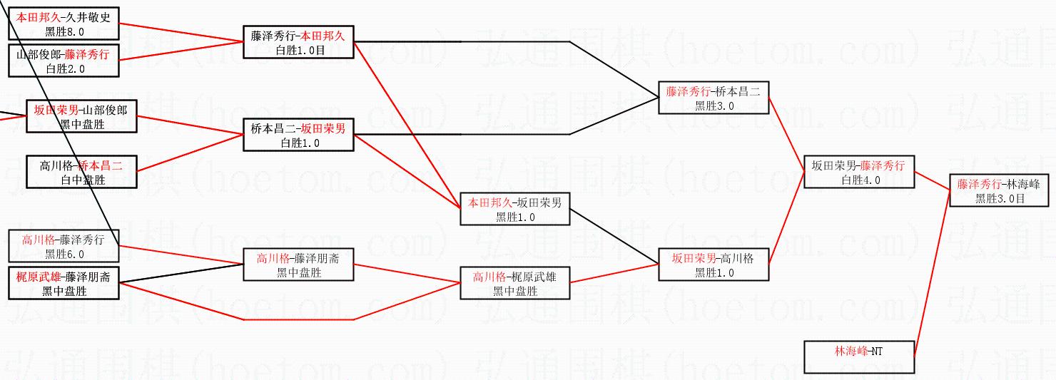 2.上半区半决赛藤泽秀行获胜, 比分:藤泽秀行 1:0 坂田荣男。棋局: