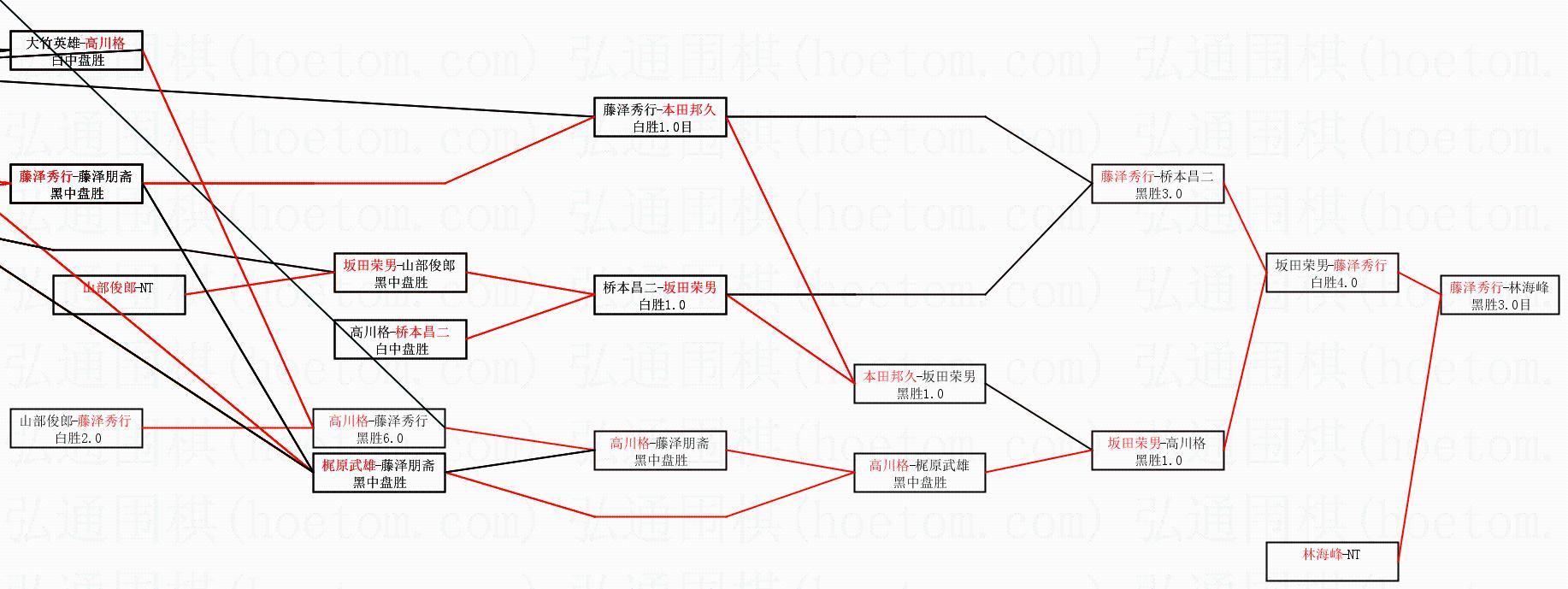 2.上半区半决赛藤泽秀行获胜, 比分:藤泽秀行 1:0 坂田荣男。棋局: