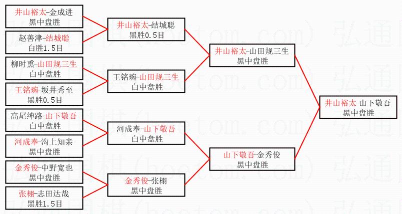 2.上半区半决赛井山裕太获胜, 比分:井山裕太 1:0 山田规三生。棋局: