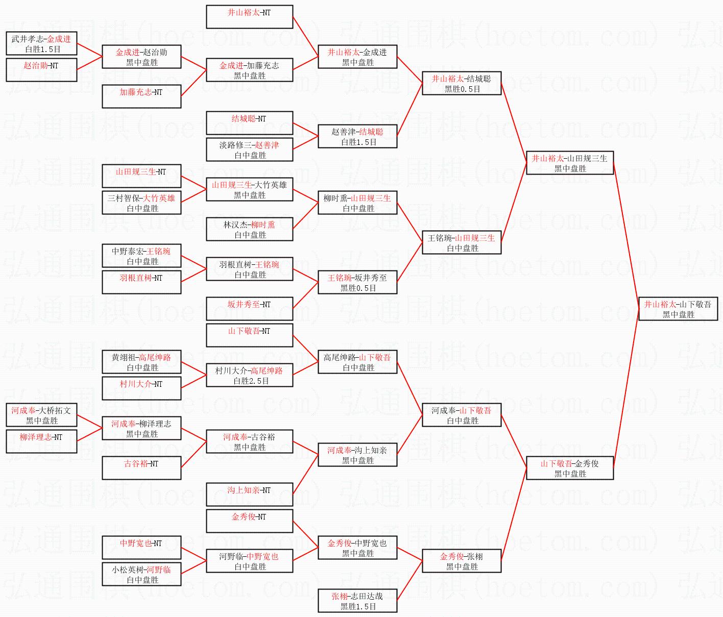 2.上半区半决赛井山裕太获胜, 比分:井山裕太 1:0 山田规三生。棋局: