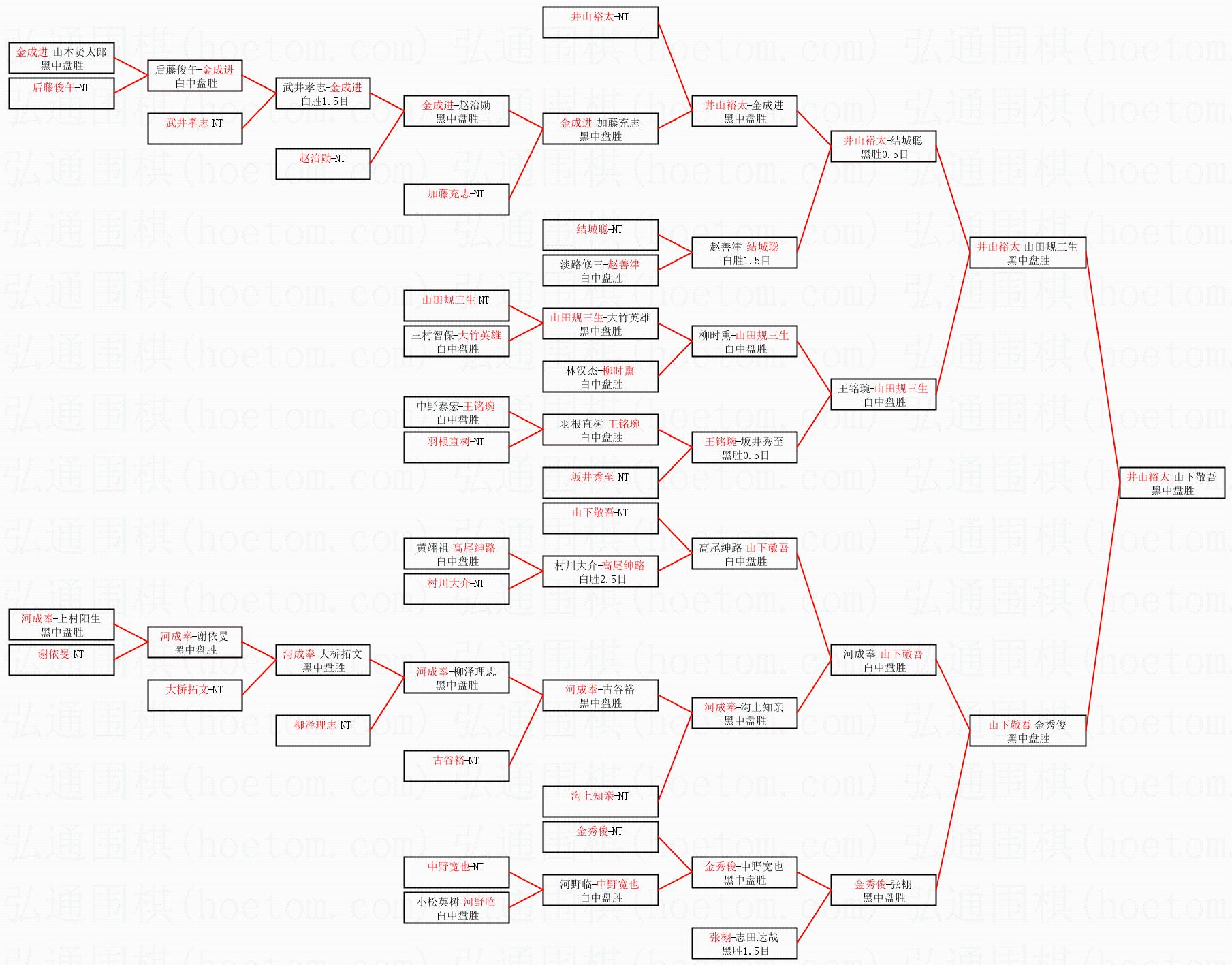 2.上半区半决赛井山裕太获胜, 比分:井山裕太 1:0 山田规三生。棋局: