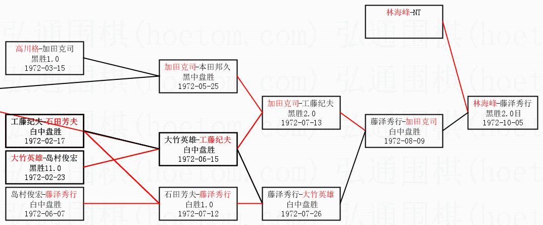 1.林海峰获得冠军,藤泽秀行获得亚军。决赛比分:林海峰4:2藤泽秀行。棋局: